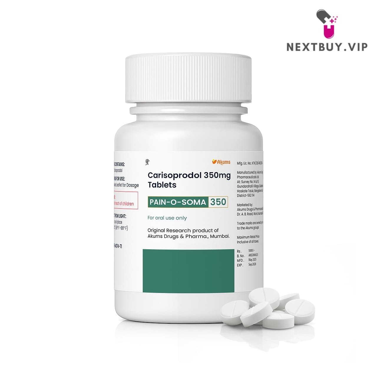 Akums Pharmaceuticals Carisoprodol 350mg tablet, also known as Soma and Carispro, is a medicine that’s typically used to treat pain and muscle spasms associated with strain or injury. In addition to these benefits, carisoprodol has the potential to cause weight loss in users. Carisoprodol is widely used to alleviate musculoskeletal discomfort and associated pain.